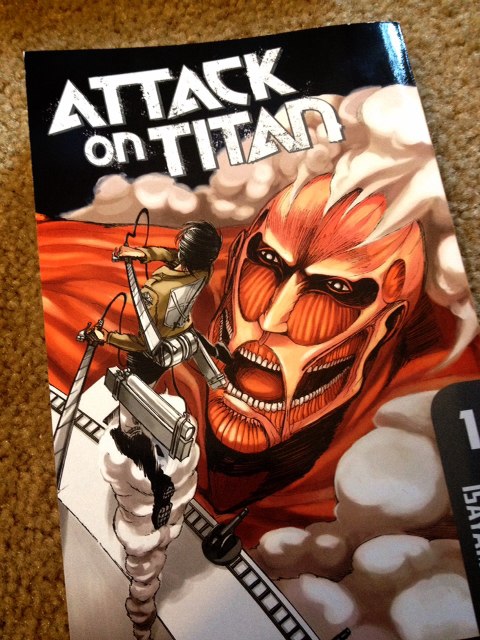 マラソンのご褒美としてコミック漫画を一冊。日本のだって。「進撃の巨人」が「Attack on Titan」というタイトルに。ぱらっと見ましたが・・・ギャ~みたいなシーン多いわ。大丈夫か、小陸?