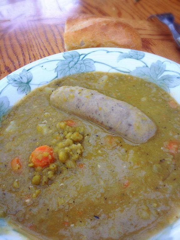 昨日、またダイエットを本格化した老陸(年中言ってるけど)が作ったレンティルとソーセージのスープ。これ見た瞬間、小陸が「うわ~!ゲロの色だ~!」と騒いでましたわ。確かに色悪いけどおいしいんだよ。鍋一杯作っちゃってどうすんだ。このお皿は私と小陸の分ですが、老陸はいつものマジックボウルでダイエット。中高年のダイエットはエンドレスです~。