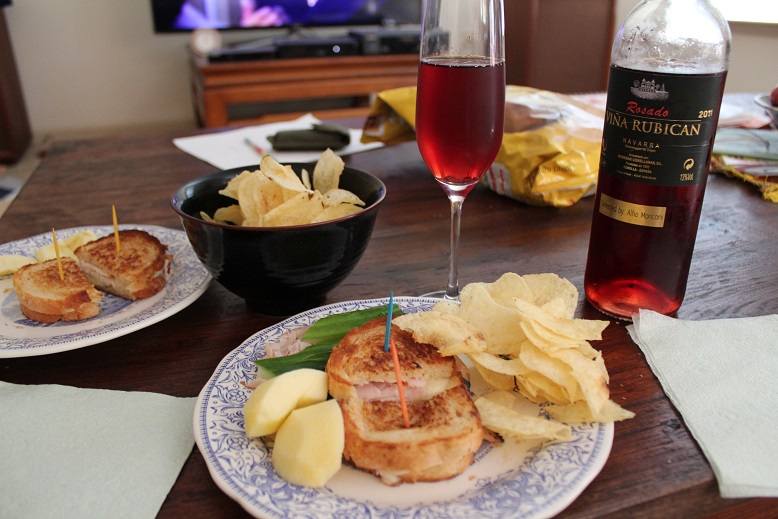ちょっと手がかかってでもシンプル・・・な「グリルドチーズサンド」をオーダー。私はテレビの前に座りそこから作り方を指示。15分後できました!