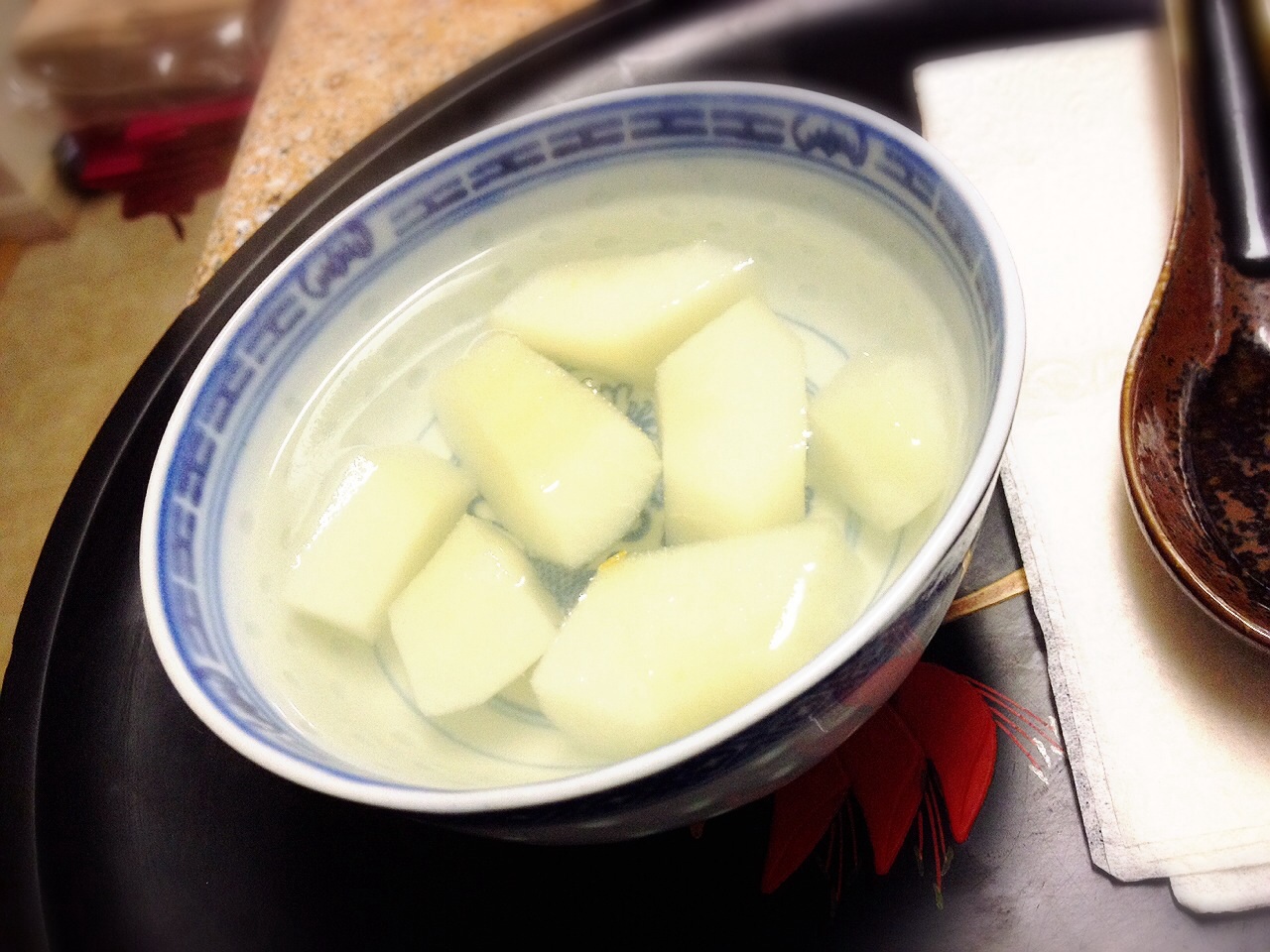 4年間の北京生活で今小陸が覚えているもの・・・この梨と氷砂糖。米粥。包子(小白菜と豚肉限定)。卵とトマトの炒め物・・・全てアイの手料理。レストランで覚えてるのは北京ダック。鴨肝。あとべろべろアイス(グリーンの棒アイスでぐにゃぐにゃしてるやつ)。こんだけですわ。舌の記憶はいつまで?