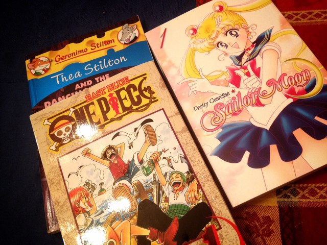 4月に高校入学した甥にアマゾンでプレゼントをオーダーしたのが先週の土曜。恐れていた通りに木曜日までに届かなかった~(涙)。近所のアウトレットモールで買いなおす。ついでに北京で老陸が会う予定の友人のお子さんにお土産も。姉妹は確か9歳と5歳くらいだったかな。女子のもんはわからん。小陸がはまってる「One Piece 」とわからないけど女子にはこれ?ってことで「Sailor Moon」の漫画。あとジェロニモシリーズの本。いまどき北京でも買えるだろうけど・・・気持ちですから!