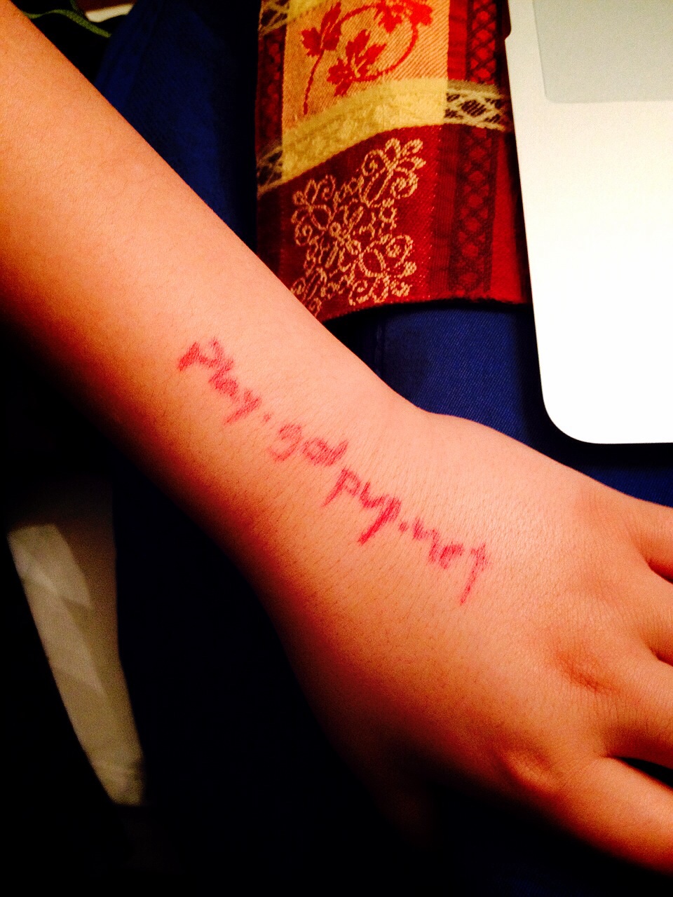 「メモがなかったから」・・・って腕に書くか~?相変わらずのカブトムシぶりです。