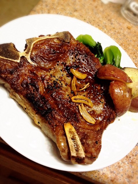 昨日の夜ご飯。Tボーンステーキ。一人分じゃないわよ。二人でシェア。相変わらず肉食系~。