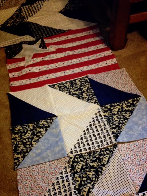 夢はすでに破れてるのでせめて今製作中の小陸のベッドキルトに国旗をあしらいました。っていつ完成するんだよ。