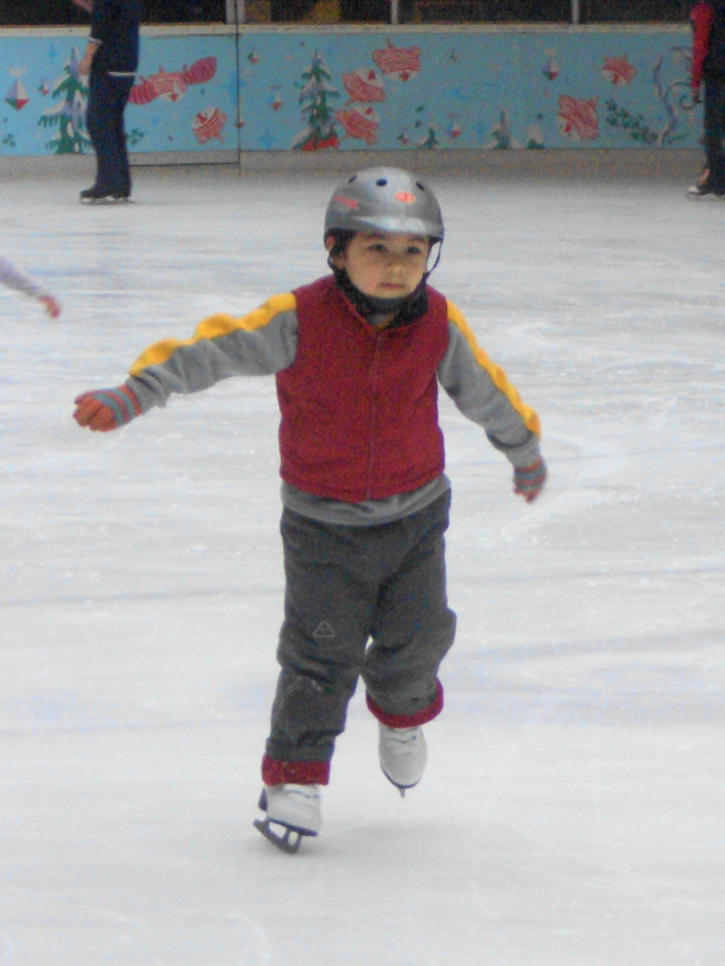 北京、5歳。スケート靴以外全て近所のお兄ちゃんS君のおさがりです~。人民並みに着込んでますね。