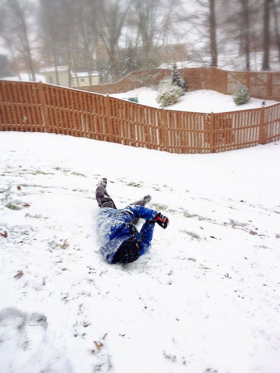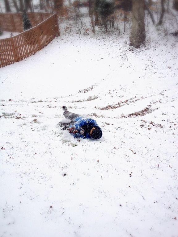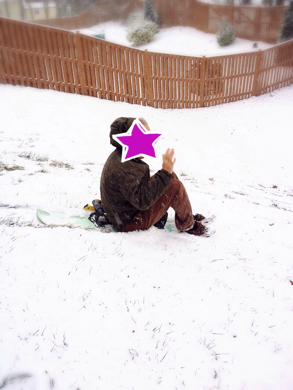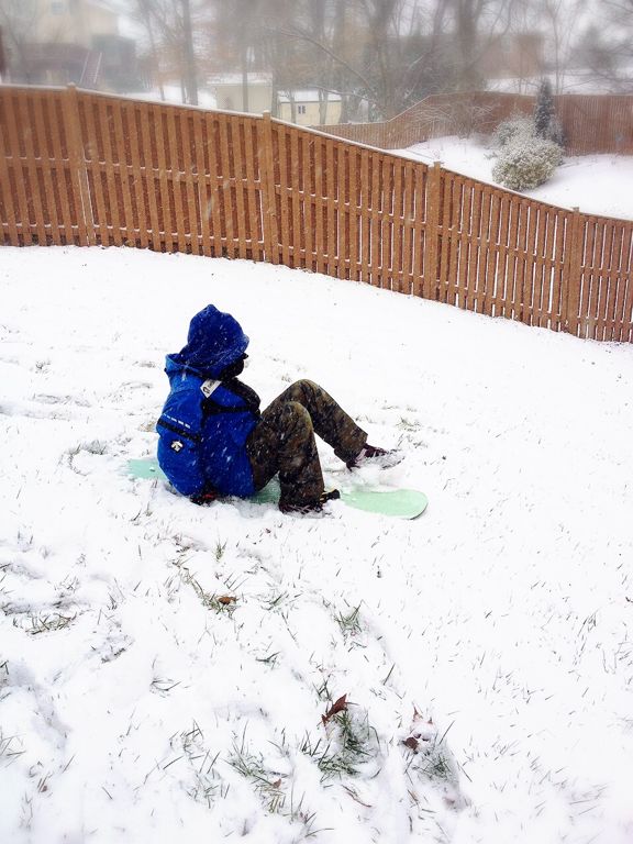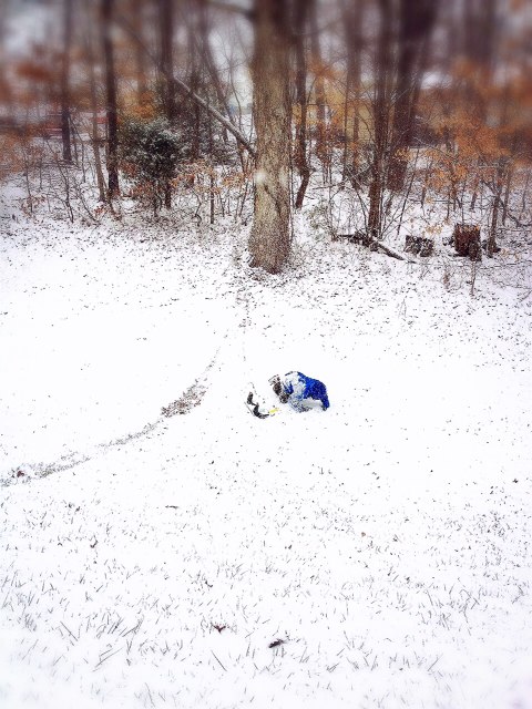 15時にはこんな状態に。能登のリサイクルショップで買ったスノーボード。前回の雪遊びで壊れました。で、この日はソリとして活用。