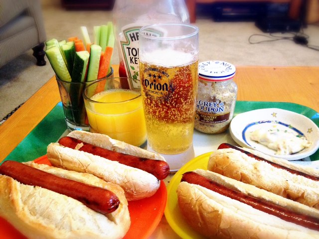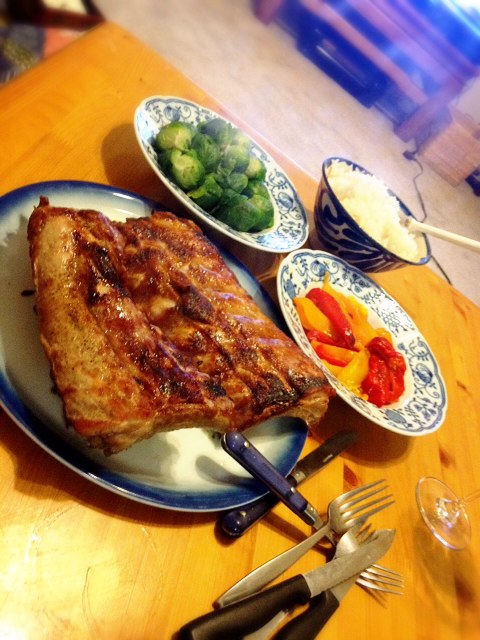 18時前に一試合が終わり。その間に夕飯の支度。オーブンにつっこむだけのフィンガーフードだよ。文句ある?スペリブ。あくまで肉食な家族です。