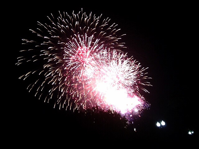 花火はセキュリティーを通らないでもいいっていうCさんとっておきの場所で。サンドイッチにチップス、そしてオレンジジュースのボトルに詰めた赤い飲み物(公共の場でお酒のんじゃいけないからね、この国は)を飲みながら。野球場で見たのとは雲泥の差。さすが首都!赤・青・白というアメリカンフラッグの色がベースだけどスマイリーフェイスや「usa」って字が浮かび上がる花火もあって楽しめました。