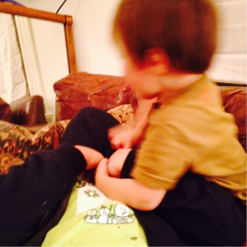 小陸は意外に遊び上手。この一週間友達とも離れてかなり退屈してたんだろうけど。最後は大をしたままのダイパーパンツで顔面に乗られて閉口~。あんたもこんな無邪気なときがあったんだよ。あの日に帰りたい....。
