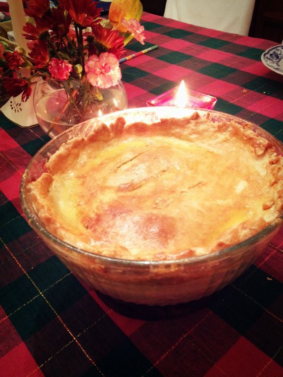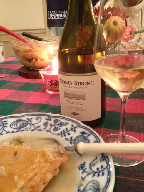 おっさんがうるさいので(笑)、ワインにあうご飯を作る羽目になったよ。ターキーの残りで「ターキーポットパイ」。皮も手作りですわ。