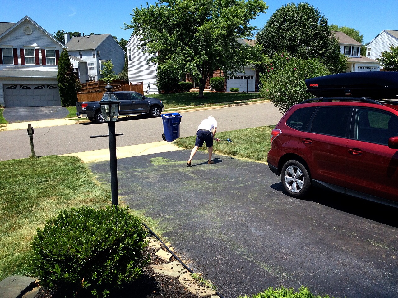 一生懸命やってるとファミリーで訪ねて来たひとたち・・・うちのすぐあとに入居予定の家族でした。ネットでしか見ないで賃貸契約したから一刻でも早く見たかったんだろうね。家の中を案内して学校のことやスプリンクラーの説明なんかしてあげた。私たちはいちいち自分でやったけど教えてもらえるのはありがたいでしょ。