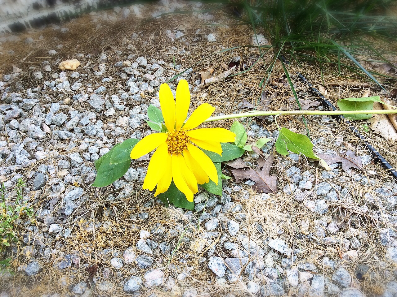 裏庭に咲いてた小陸のひまわり!日陰だからか横に倒れつつもしっかりと咲いてる。1年弱のこの家での思い出。