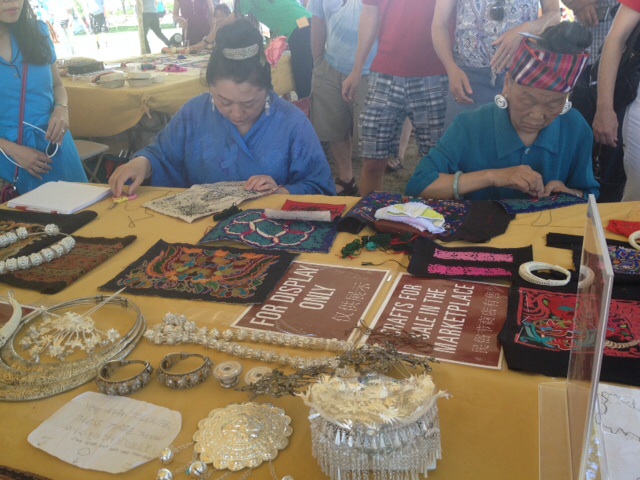 おおお〜!!貴省から苗族のおばちゃんたちも!懐かしい〜!理解ある夫のおかげで2泊3日の女子旅したことがありました。北京から飛行機と長距離バス乗り継いで到着した貴省のあの村はまさに「日本昔物語」の世界。刺繍の下手な女子は結婚できないそうです、苗族。で、上手な人の遺伝子だけ受け継がれていってあの精密な刺繍の伝統があるってわけ。北京で大枚はたいて買ったアンティークの苗族の衣装、北京から東京への引越しのときミステリアスな紛失でどっかいっちゃったけどね。