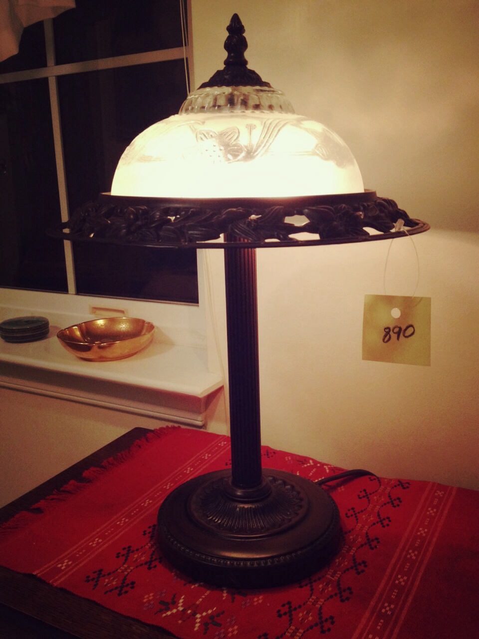 気づいたら感謝祭まであとちょっと!なのにゲストルームの片付け終わってない!しかもベッド以外の家具がない!今まで足踏み入れたことなかったけど・・・日曜日の朝、いろんな人種で盛り上がってたよ。日本のリサイクルショップと違う雰囲気、はっきり言って。玉石混交じゃない、石ばっか・・・って思ってたけどこんなランプを見つけました。