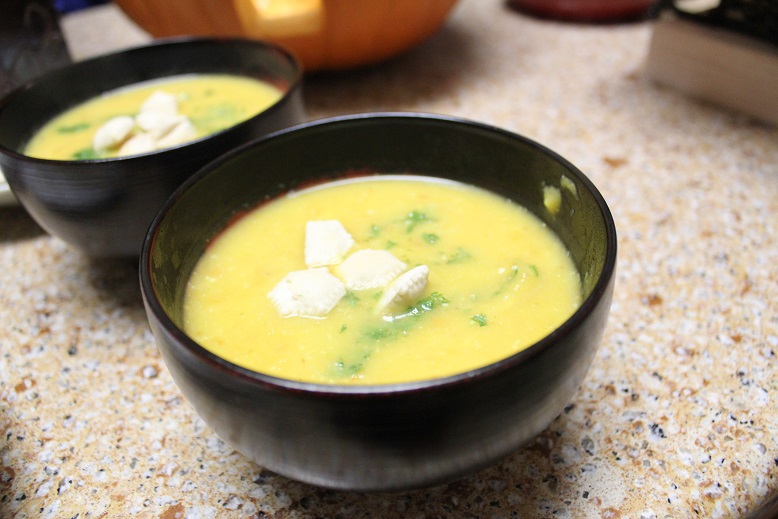 パンプキンスープになりました~。残りは捨てたよ・・・でかすぎる、3人家族にはね。