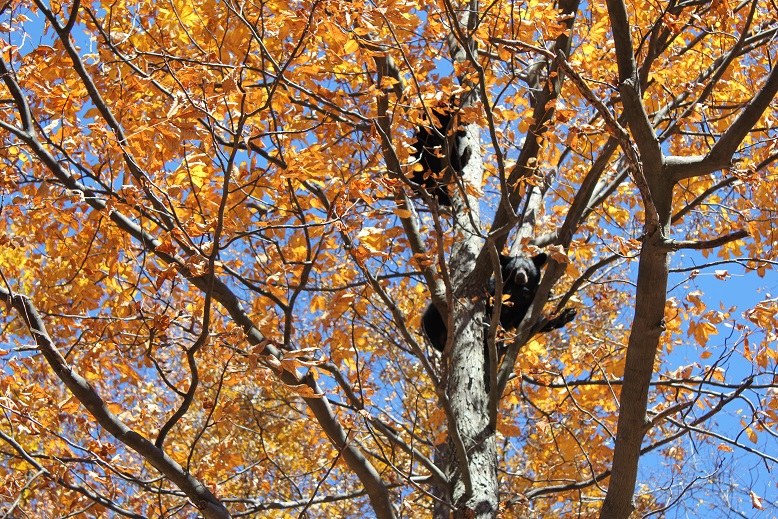 途中くまちゃんたちにも会いました。なぜか木に登ってます。蜂蜜さがしてたの?登山中にひょっと会ったら怖いけど、あんだけギャラリーがいたら怖くないって。