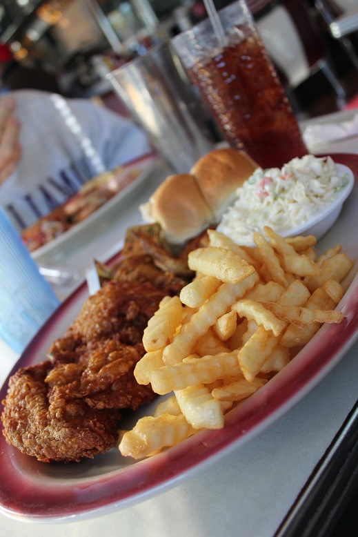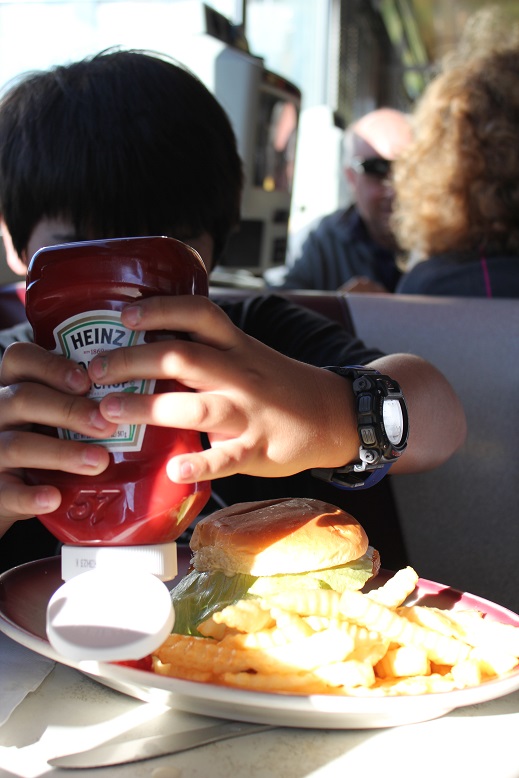 24時間営業で朝ごはんもランチもディナーも食べれます。こういう普通のダイナーで食べられる料理がアメリカンだね。おいしいかったよ、運動したあとだしね!
