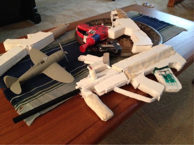 最近の小陸の作品。名前を何度聞いても覚えられないけど・・・勝手にキッチンの箒の先っぽを切ってマシンガンの銃口に使われてましたよ。もう少し紙粘土でくるんでからアクリルで塗るんだと。ううう、これいつごろ建築方面に軌道修正できるかしらん?