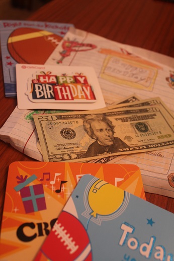 そうなんです。夜11時に帰った子を除いてみんなお金$25かターゲットスーパーのギフトカード($25と$30)をくれてたんです。しかもお金はピン札でした。アメリカ人でこんなのあり?
