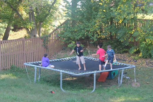 お開きの前に隣の家でトランポリン。空中前転してパンツを破った小陸。さっそくもらったターゲットのギフトカードでパンツ買わせてもらうわよ。