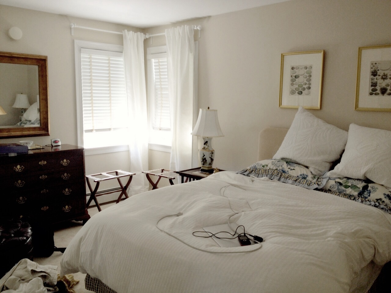こんな素敵なゲストルーム。3エーカーの土地に立つ豪邸はプール付き。夏でも涼しいから温水だって。