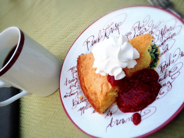 奥様手作りのケーキにこれまた手作りのフランボワーズのソース。