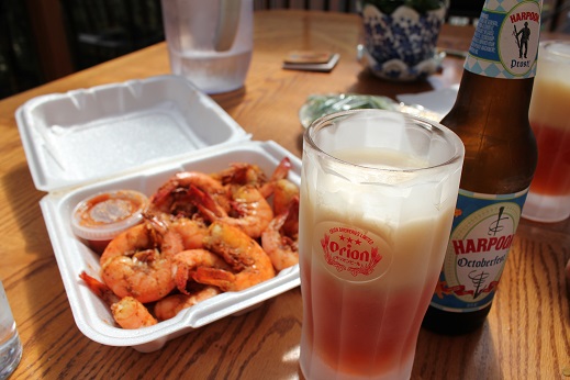 メキシコ湾からきたえびでランチ。ホットなスパイスがビヤーにあうね!