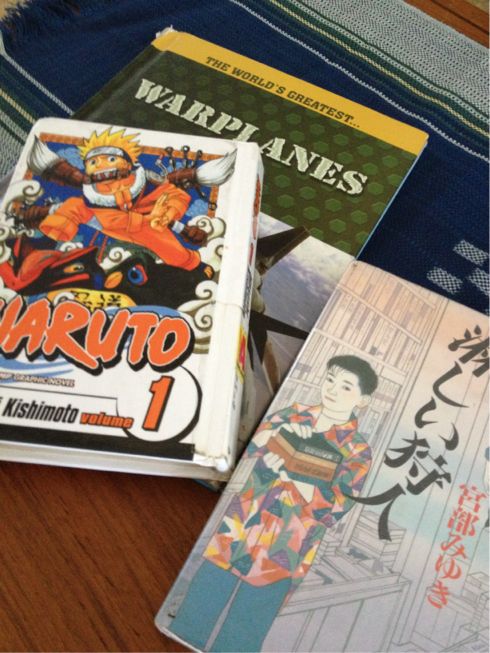 「外国語」コーナーに一冊だけあった宮部みゆきの本。そして「Young teen」のコーナーには日本のコミック(全て英訳版)も。小陸が15巻までしか持っていない「One Piece」もあった。予約しないとムリなくらい借りられてる。小陸がとりあえず選んだのは「Naruto」ともちろん「Warplanes」。お次は「テニスの王子様」かな。あんなのでも読んでモティベーションあげてもらわないと、テニスも。