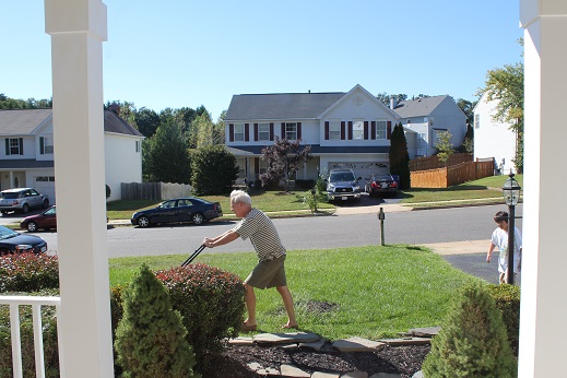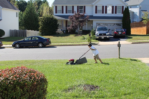 お~、なんと殿みずからが芝刈り!アメリカでは夫の仕事ですから!