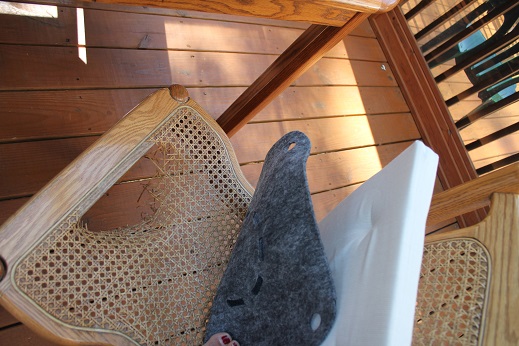先週のアントワープからの荷物に無事ダイニングの椅子もはいってました。でもなぜか一つ足りないんだけど・・・。そして一つはこんな状態。