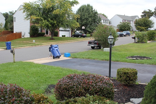 前夜にだして置いたごみのカートをガレージに入れる。出すのも彼の仕事。一回25セントだよ、高い!