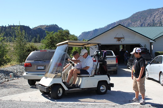 老陸はゴルフ2年ぶりなんで90歳のおじさんとペア。従兄のCさん所有のマイゴルフカートで出発!Cさんのレイクハウス、目の前湖で反対側ゴルフコース。カート2台とボート所有。老陸、またここでリタイヤーしたくなった模様です。確かに。だってゴルフ、ハーフラウンドで20ドルだよ。
