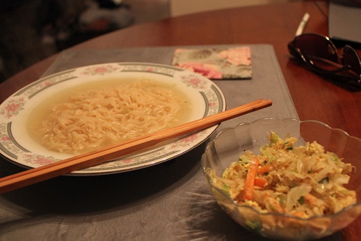 そして NJに戻りました。やつらヤンキーは冷凍ピザを食べるってんで私は近くのスーパーで見つけたSapporo Ichibanを。これなら間違いないよね?って思ったのにチキン味しかなくて、しかも本家のサッポロ一番とは程遠いアメリカ人向けの味・・・う~ん、きついわこれ。スーツケースの底に琉球爆弾と酒豪伝説をしのばせてきたけど、実は胃薬が必要だったか、これからのアメリカ生活?