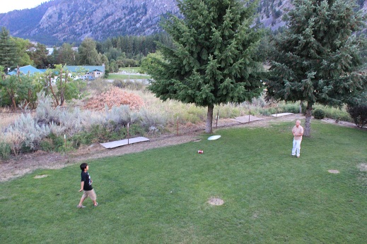 広いバックヤードでフリスビーしたり。