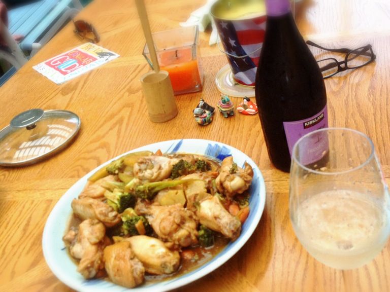チキンとブロッコリーの炒めものです。プロセッコもおいしゅうございました。