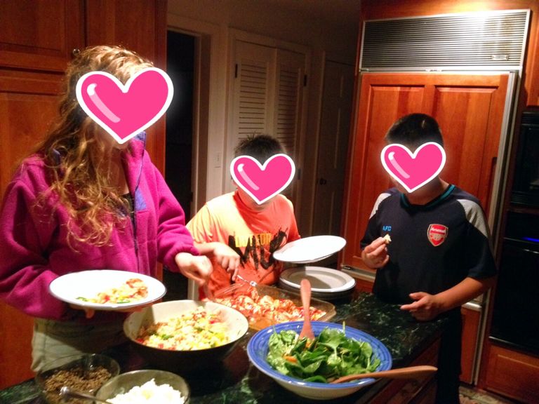 9時半、ようやくご飯。スペイン人か!なくらいの時間だね。お姉さんと恥ずかしそうにごはんをよそうボーイズ。