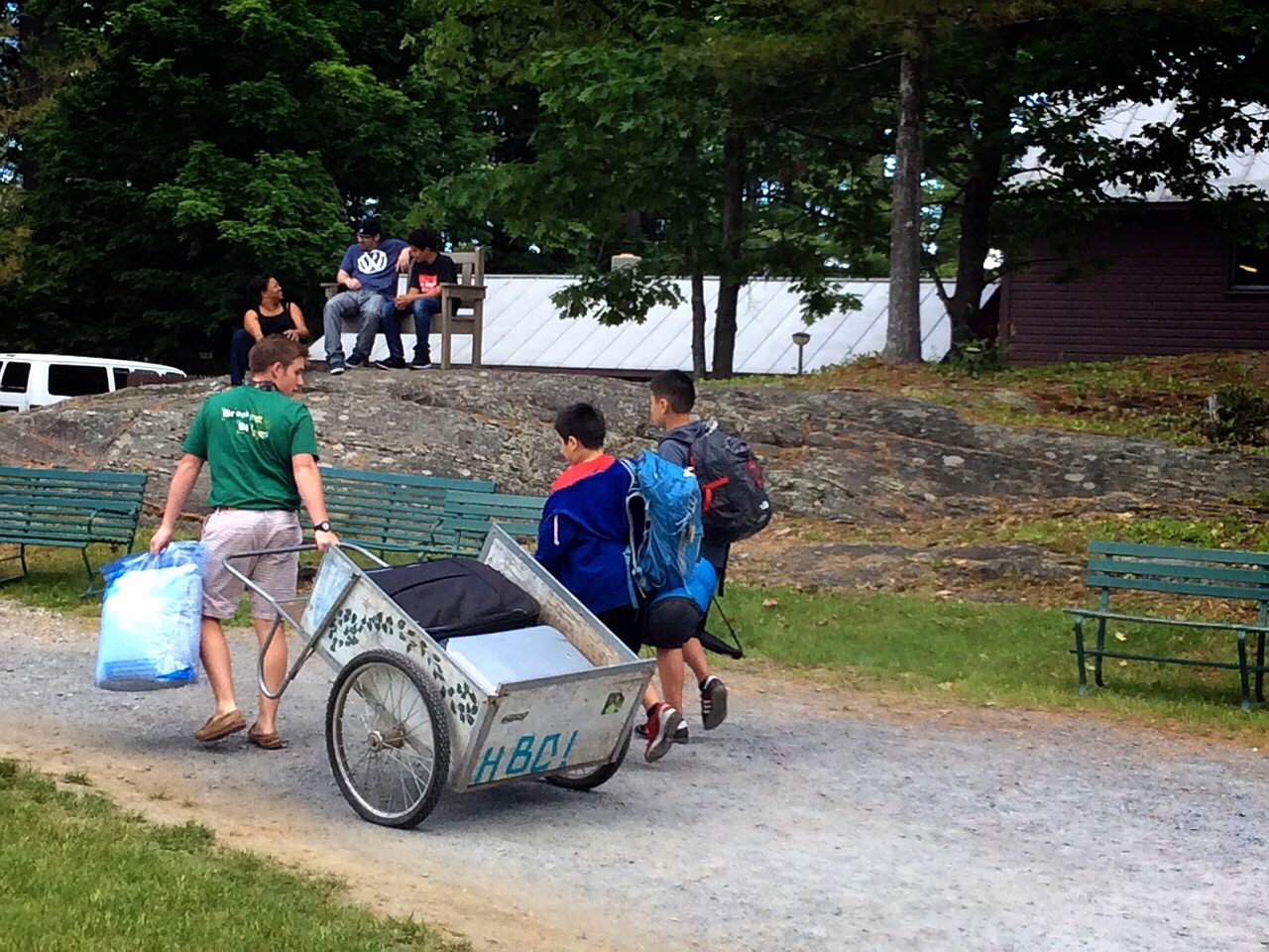 その翌日、いよいよサマーキャンプ会場まで。どうやらバーモントとニューハンプシャーの間らしいです。昔読んだ「エリーdoing」って吉田まゆみの漫画でアメリカのサマーキャンプのことが出てて憧れたものです。ティーンの女子がキャンプカウンセラーの大学生に憧れて初恋・・・妄想が止まらない。誰かとめて〜!